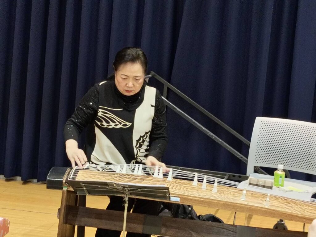 私たちの「さくらさくら」の後は講師演奏です。曲はさくら変奏曲。この勉強会の流れをうまくつなぐ選曲です。細かい奏法はわからずとも、筝という楽器の魅力満載の曲でした。