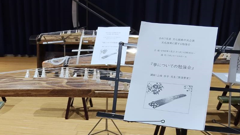令和7年度文化講座(2026年3月14日開催予定)は箏のレクチャーコンサートです。そこでこのレクチャーコンサートに先駆けて、文化振興市民会議員で「箏に関する勉強会」を行いました。講師は箏演奏家の上條妙子先生です。用意していただいた箏はなんと一人に一面。当日の記録をご覧ください。